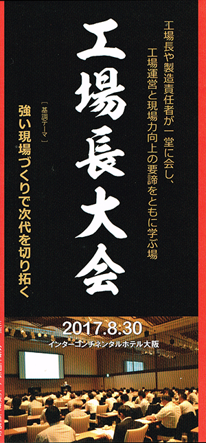 来る8月30日インターコンチネンタル大阪にて公益社団法人 大阪府工業協会主催にて「工場長大会」を開催します。